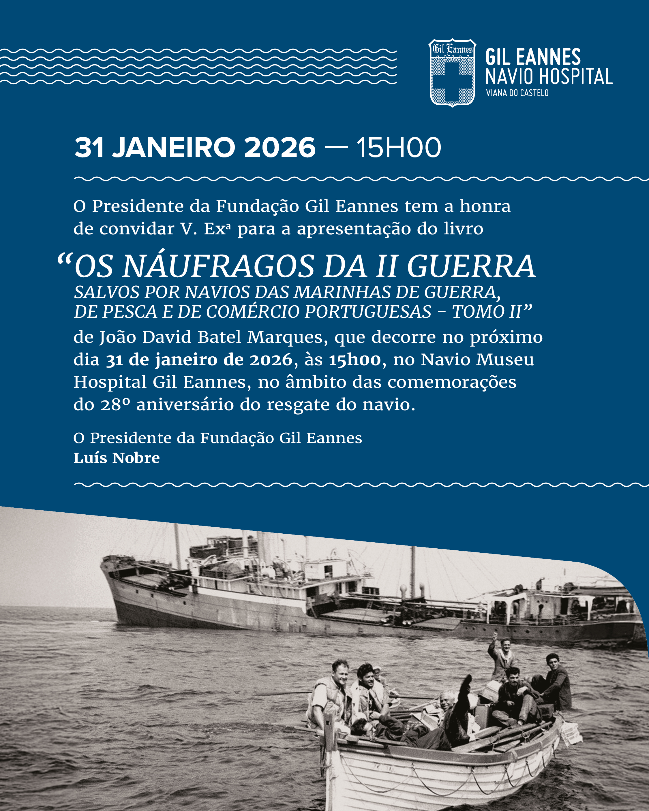 Durante todo o dia, a entrada ao Navio Museu será gratuita!No âmbito das comemorações e chegada a Viana do Castelo, no dia 31/01, pelas 15h00, será o lançamento do Tomo II do livro "Os Náufragos da II Guerra salvos por navios das marinhas de guerra, de pesca e de comércio portuguesas", de João David Marques. Esperamos pela sua visita!